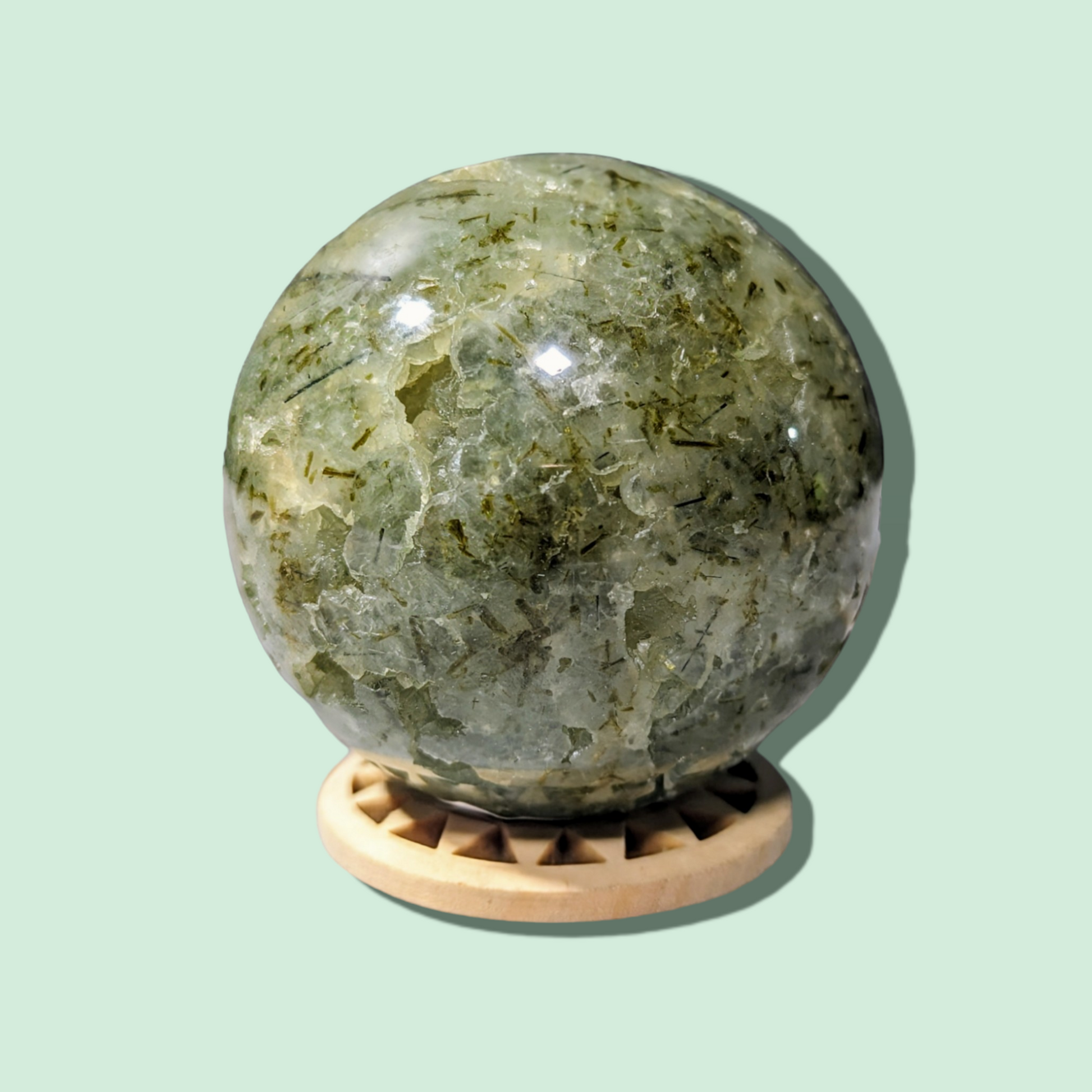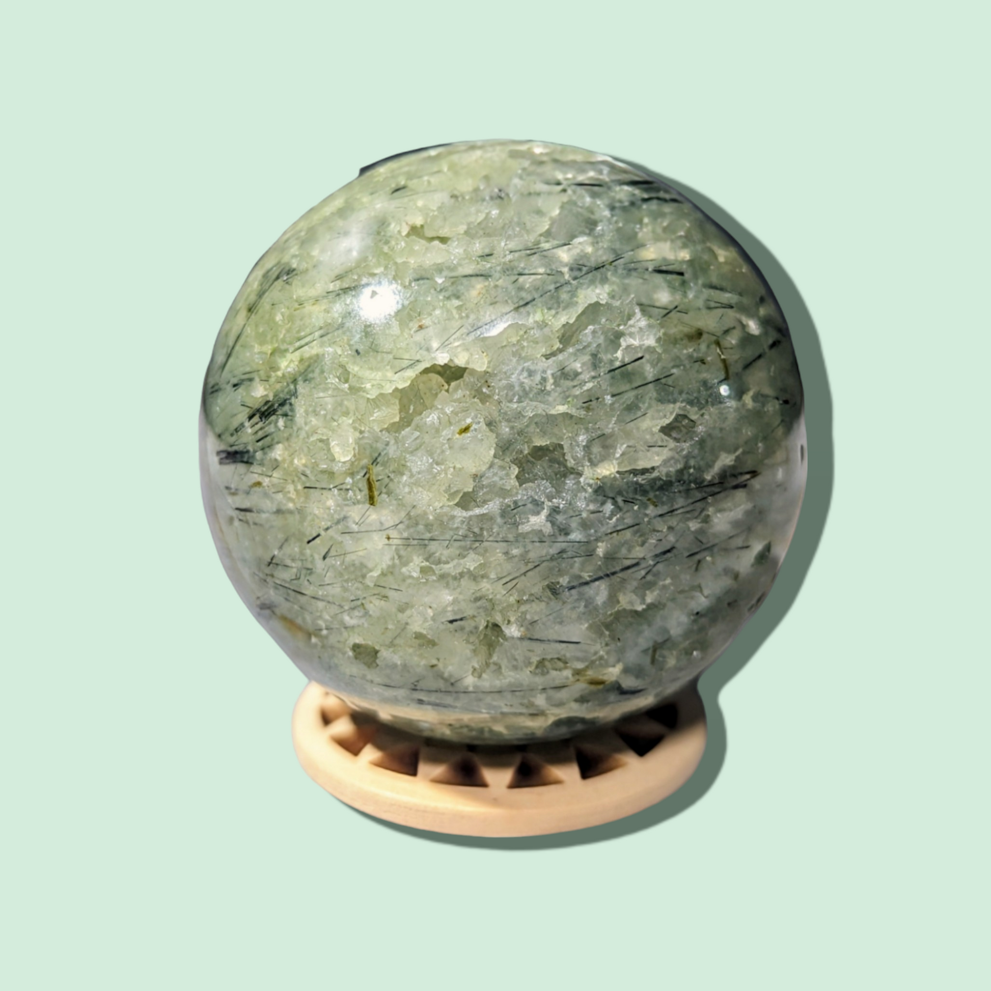 - Meditative Aid: Hold or place your Prehnite Sphere nearby during meditation to benefit from its calming energies and to enhance spiritual connection.