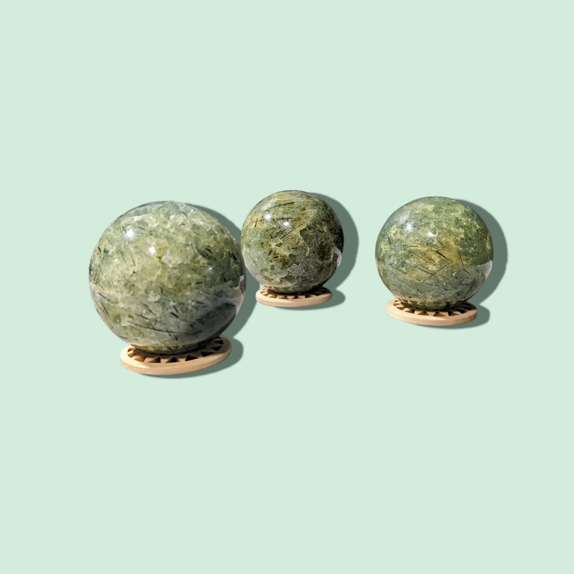 - Genuine Prehnite: Hand-selected for their quality and ethereal beauty, each sphere radiates with a soft, green glow and unique inclusions.